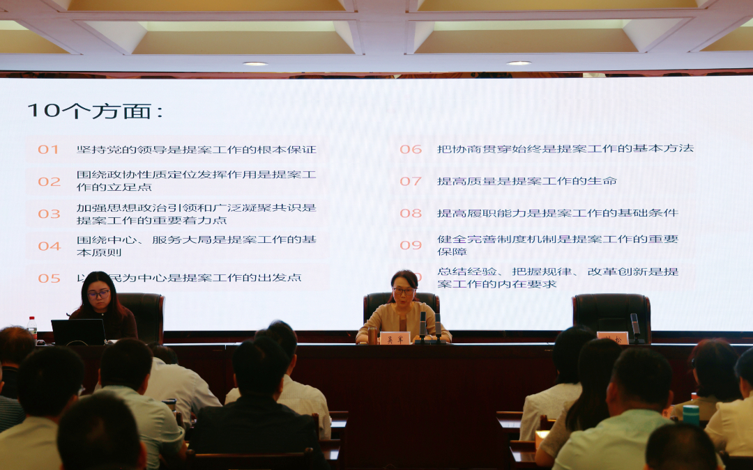 此次培训为期一天,邀请政协系统资深专家,围绕学习贯彻习近平总书记关于加强和改进人民政协工作的重要思想,从加强委员履职能力、做好提案工作、高质量撰写社情民意信息三个方面进行专题授课。